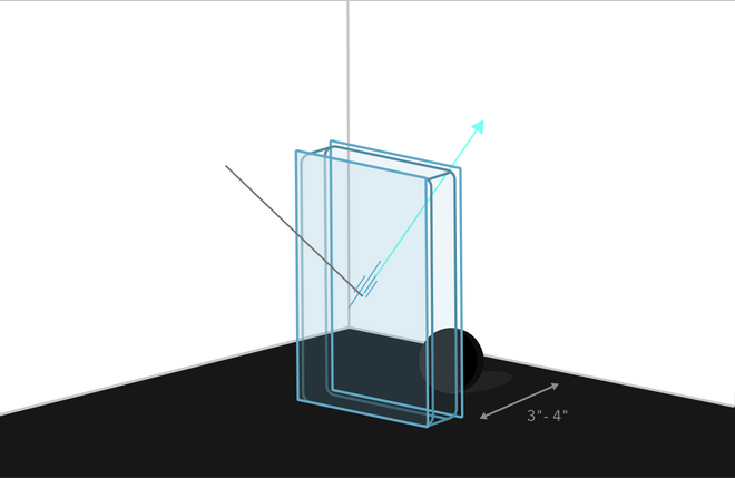 To observe the reflectance, find a black background and place the glass sample several inches away. Make sure the surface you are evaluating for reflectance is facing you.