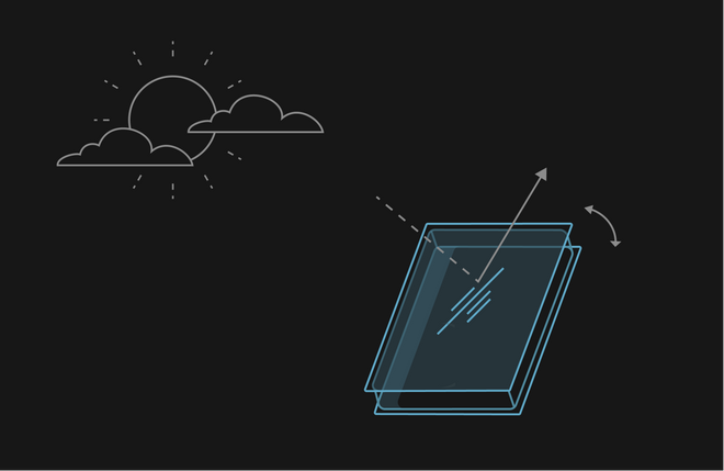 View the sample vertically or at a slight angle under natural lighting. Evaluate angular color, viewing the sample from acute to obtuse angles. Try varying conditions to appreciate the different ways in which the glass behaves (sunny, overcast, night time).