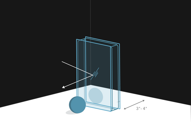 Tip: place an object in front of the glass sample to appreciate the reflectance of the object on the glass.